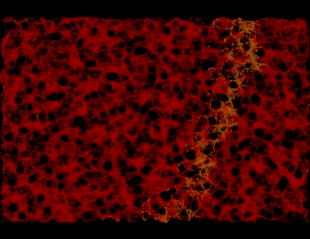 Network Simulation: 4k nodes, 40% inoperative, Cartesian-proximity topology. The update period of the visualisation is obviously lower here than in the 6k node simulations above.
